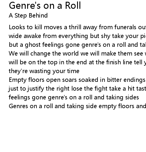 Empty floors open soars soaked in bitter endings why feelings die after lies just to justify the right lose the fight take a hit taste defeat and not a win feelings gone genre's on a roll and taking sides |