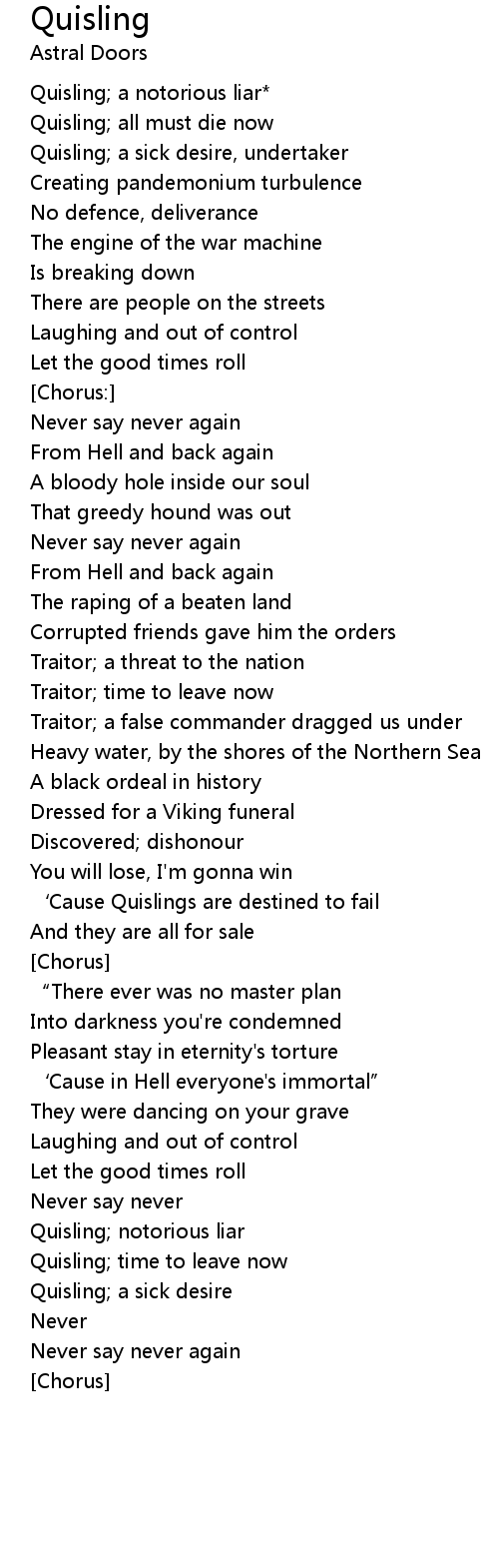 | ' Cause Quislings are destined to fail | |