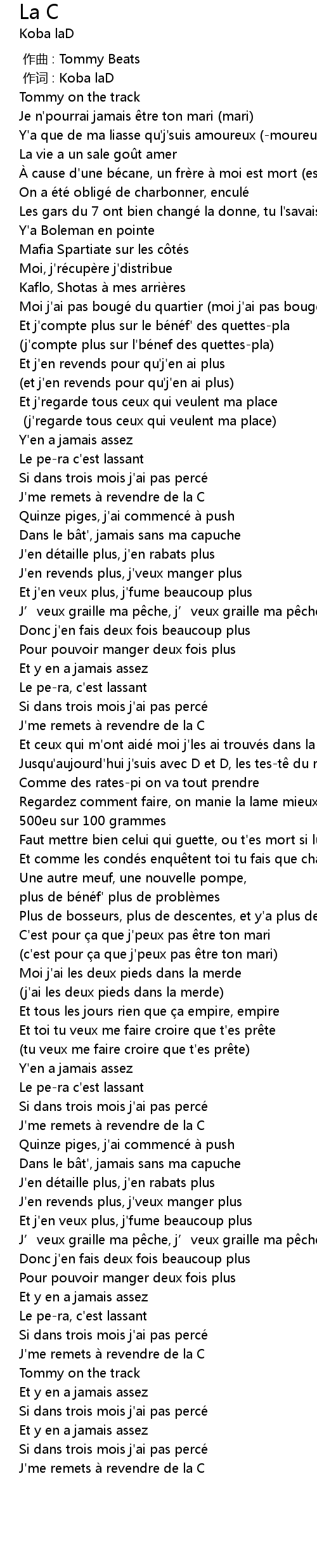 | [00:52.79] | J'me remets à revendre de la C |