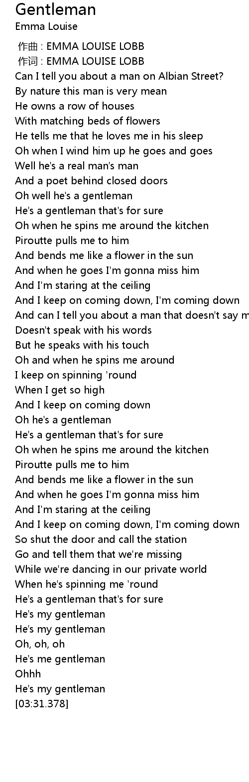| [02:13.141] | Oh he' s a gentleman |