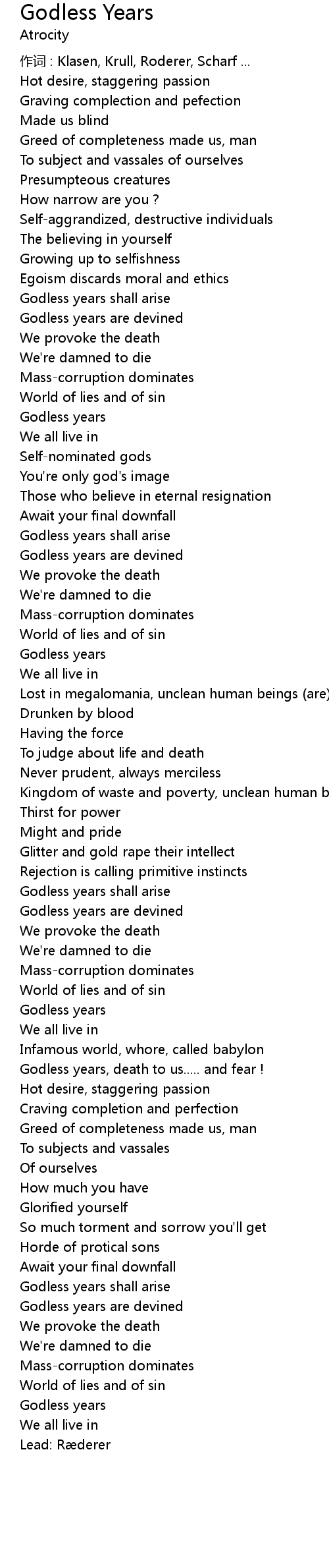 | Godless years are devined | |