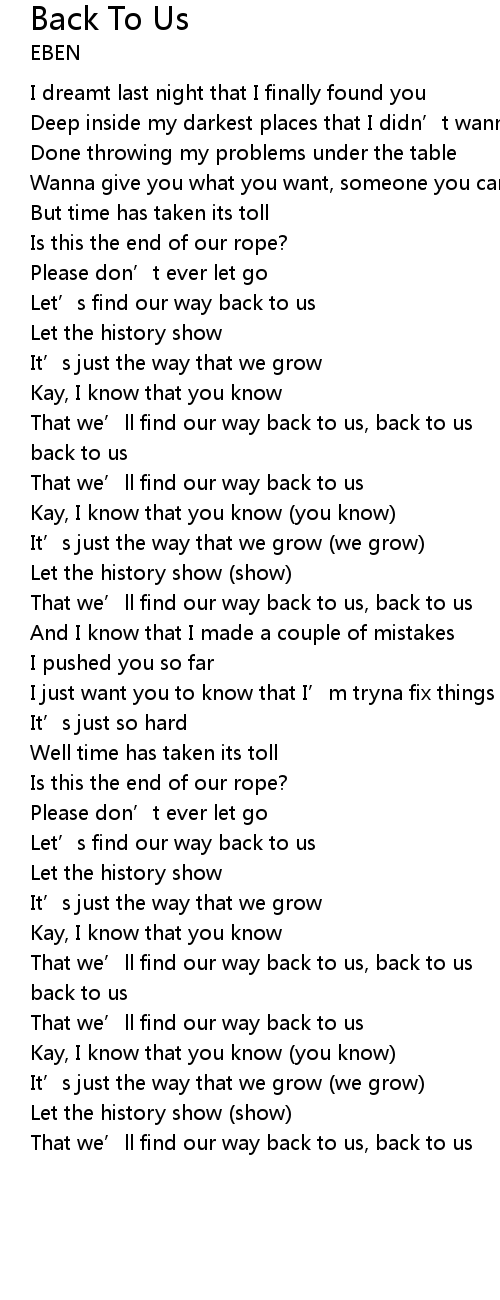 | [01:15.781] | That we' ll find our way back to us, back to us |