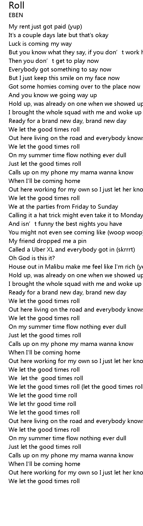 | [02:19.538] | We let the good times roll (let the good times roll) |