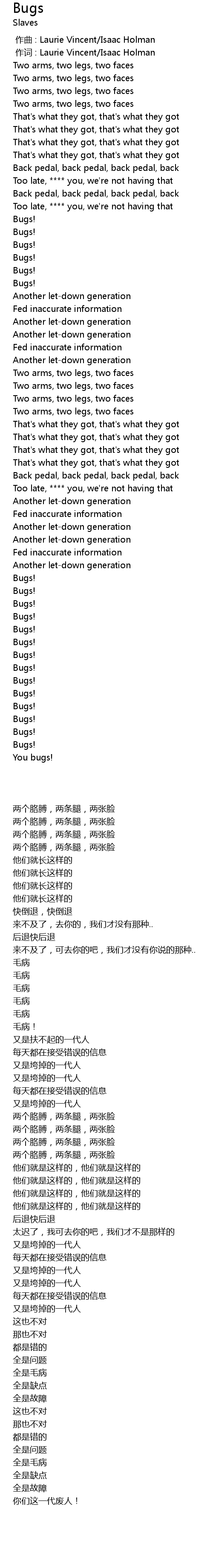 | 歌曲 | Bugs |