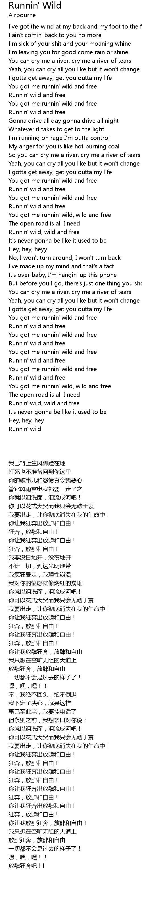 Runnin' wild, wild and free |