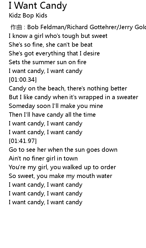 | [01:09.54] | Candy on the beach, there' s nothing better |