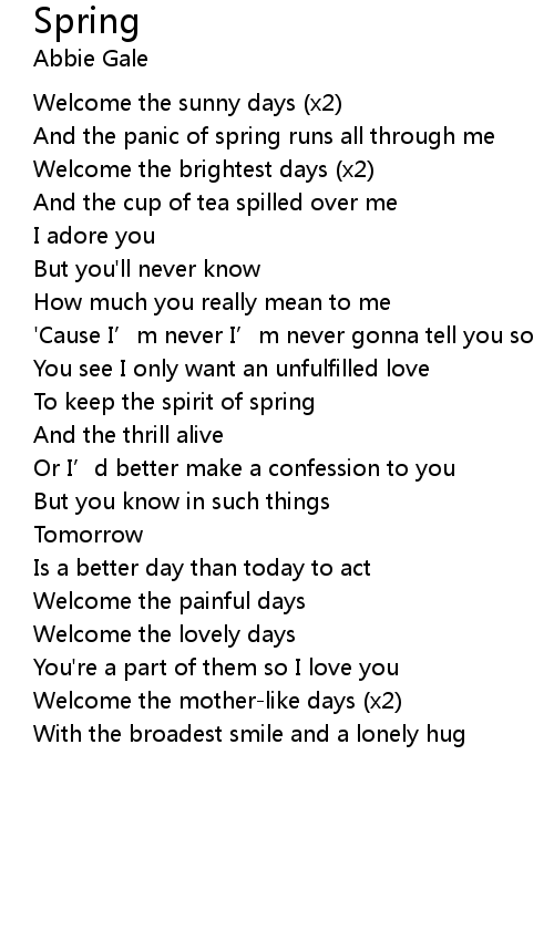 | Welcome the lovely days | |