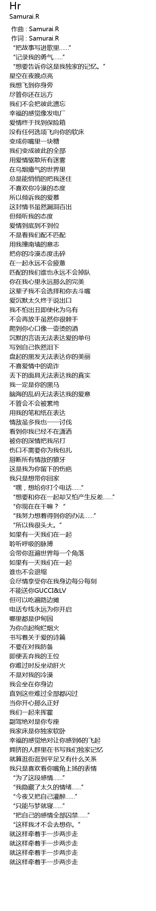 | [00:01.000] | 作词 : Samurai.R |