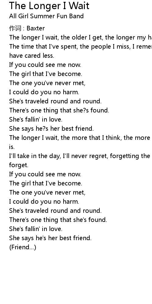| The longer I wait, the older I get, the longer my hair, I run out of patience. | |