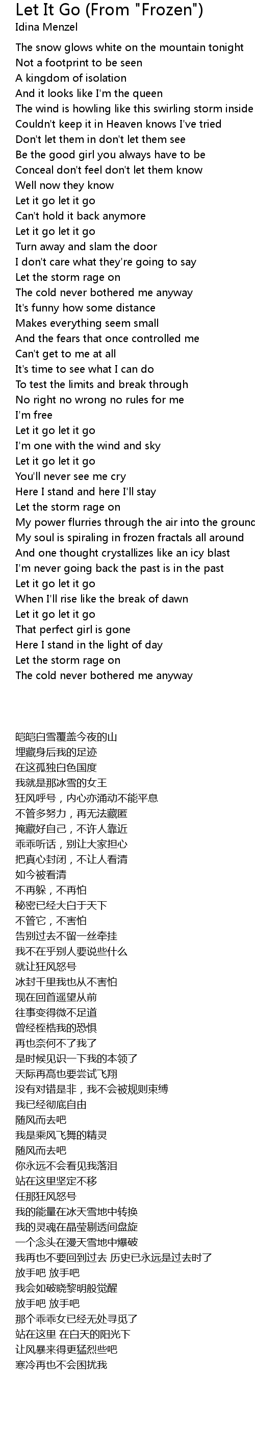 Let it go let it go |
