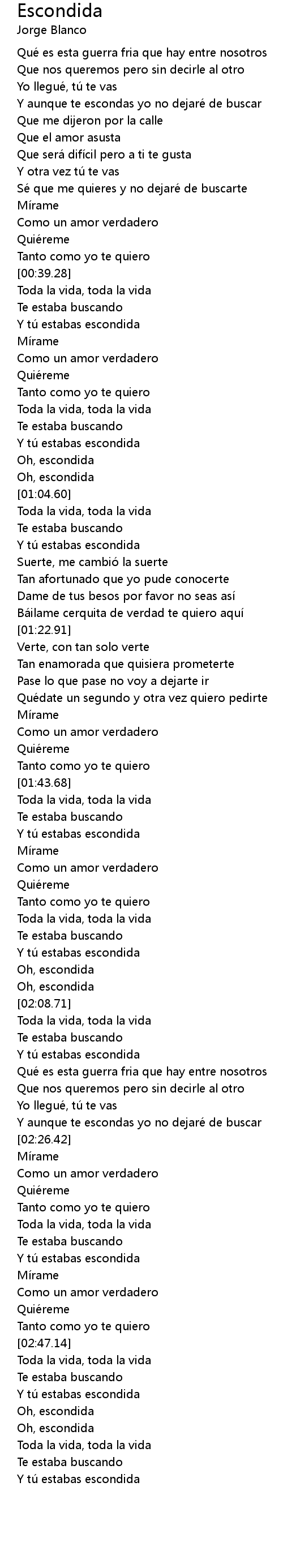 | [02:23.58] | Y aunque te escondas yo no dejaré de buscar |