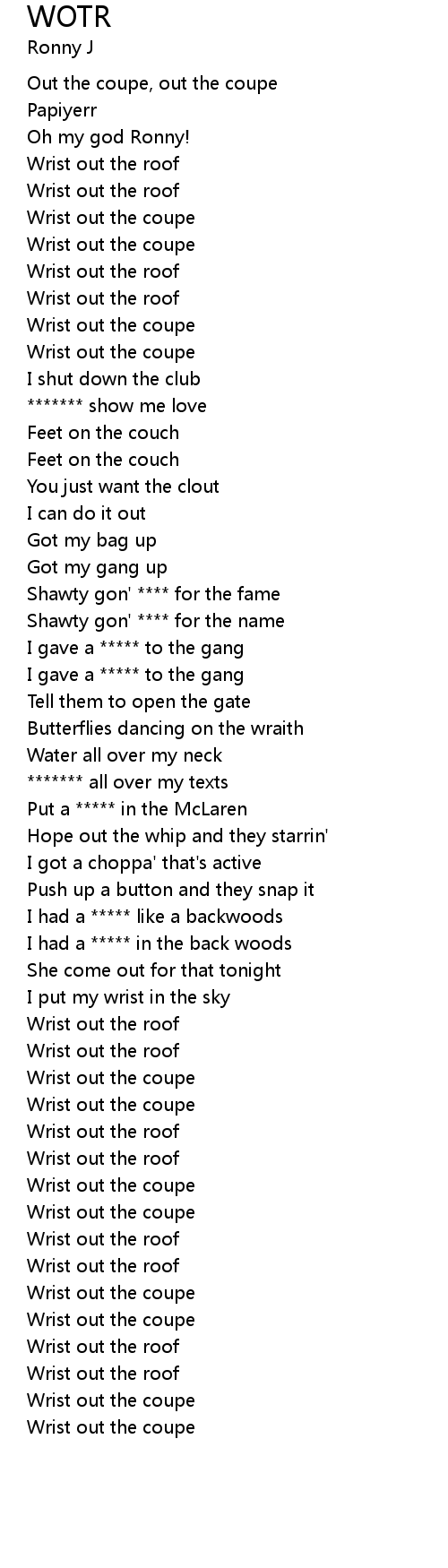 | [01:22.74] | Wrist out the roof |