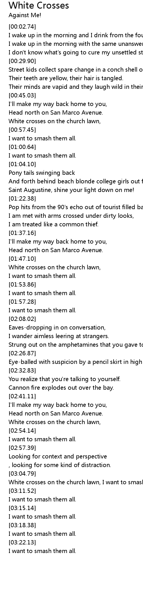 [03:05.36] White crosses on the church lawn, I want to smash them all.