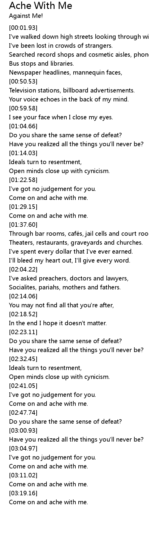 | [01:58.84] | I'll bleed my heart out, I'll give every word. |
