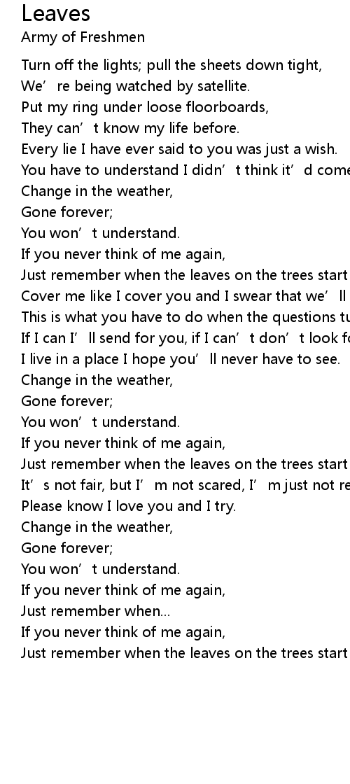 | Just remember when the leaves on the trees start to fall. | |