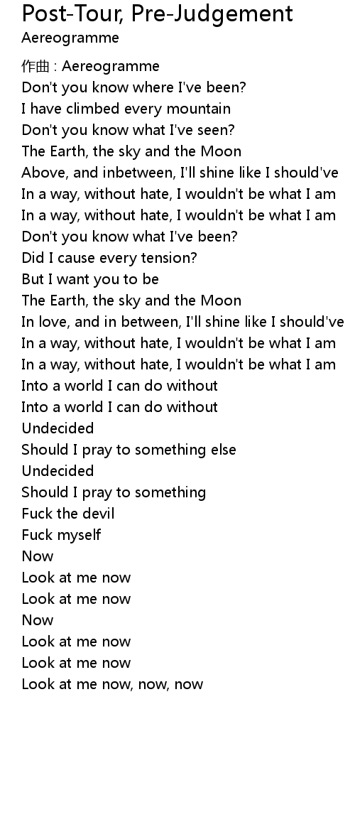 | 歌曲 | Post-Tour, Pre-Judgement |