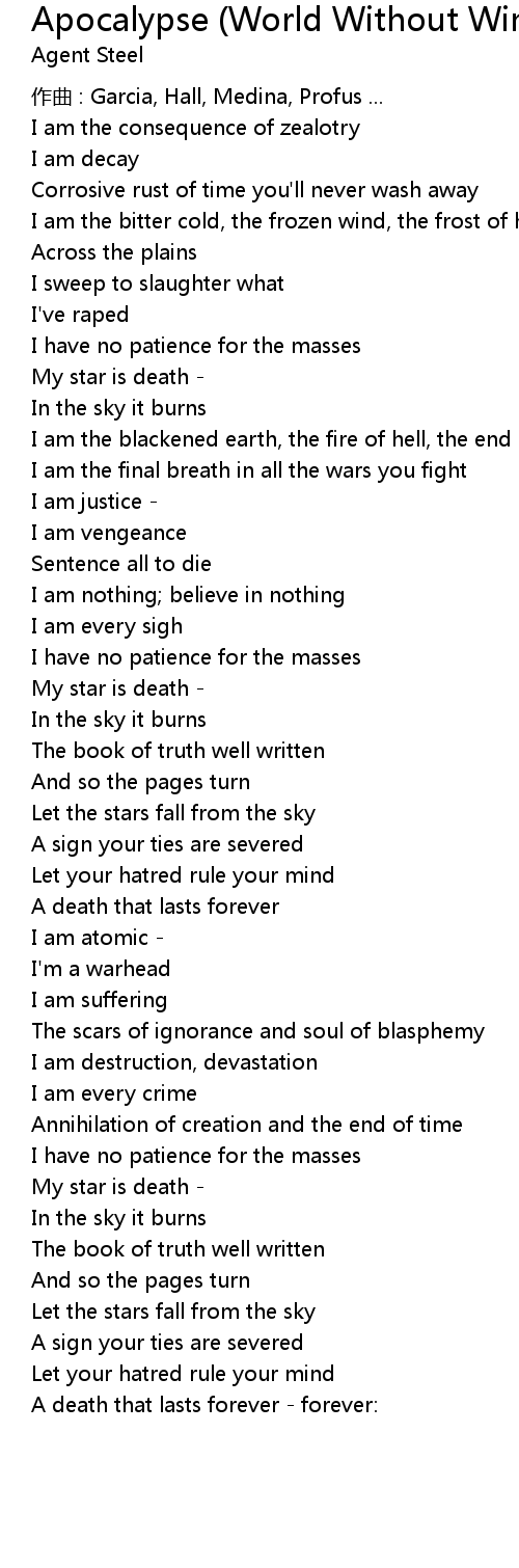 | 歌曲 | Apocalypse (World Without Windows) |