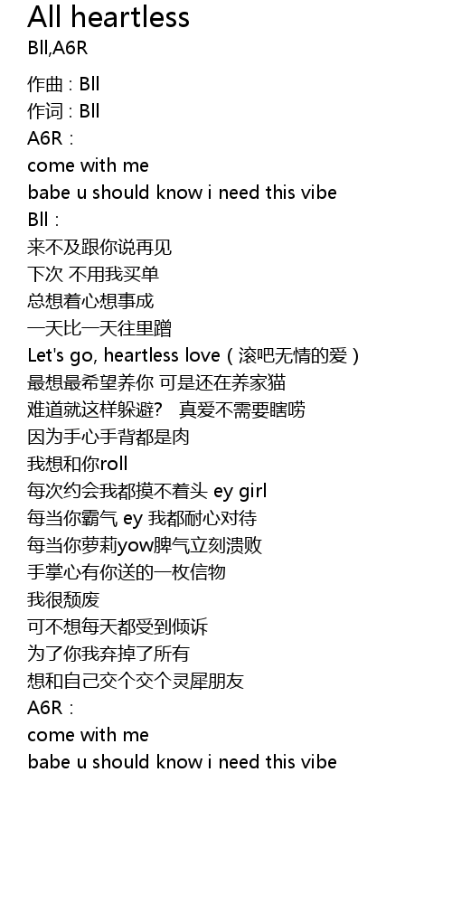 | Let' s go, heartless love gǔn ba wú qíng de ài | |