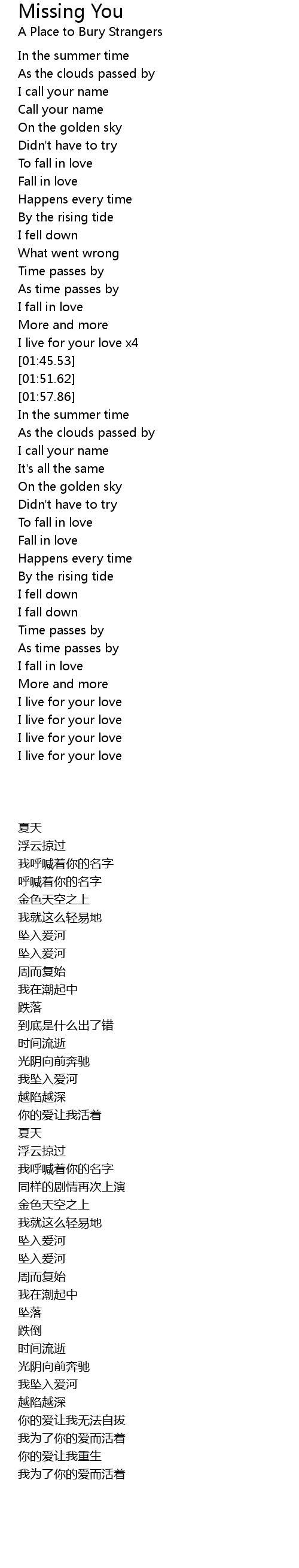| [01:39.63] | I live for your love x4 |
