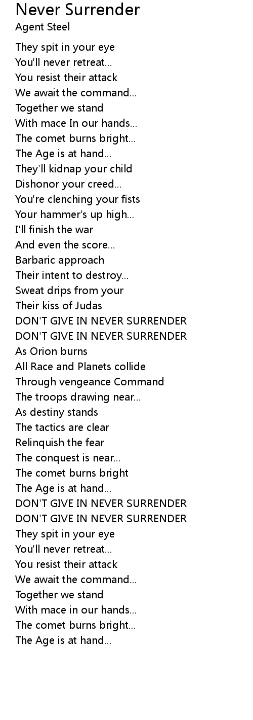 DON'T GIVE IN NEVER SURRENDER |