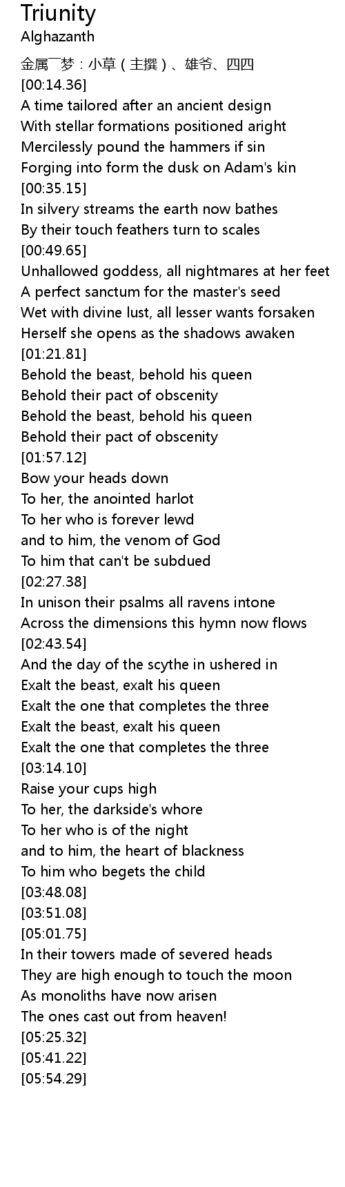 | [02:56.13] | Exalt the beast, exalt his queen |