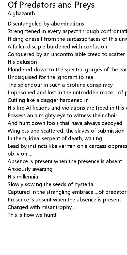 Lead by instincts like vermin on a carcass oppressed by the context; blessing of oblivion ... |