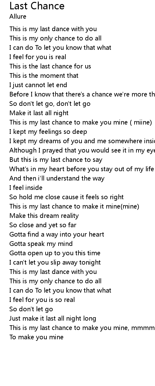 | This is my last chance to make you mine, mmmm, yeaah haaaa,haa,ha | |