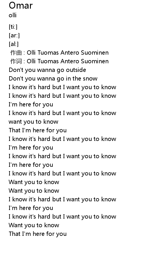 | [00:01.000] | zuò cí : Olli Tuomas Antero Suominen |