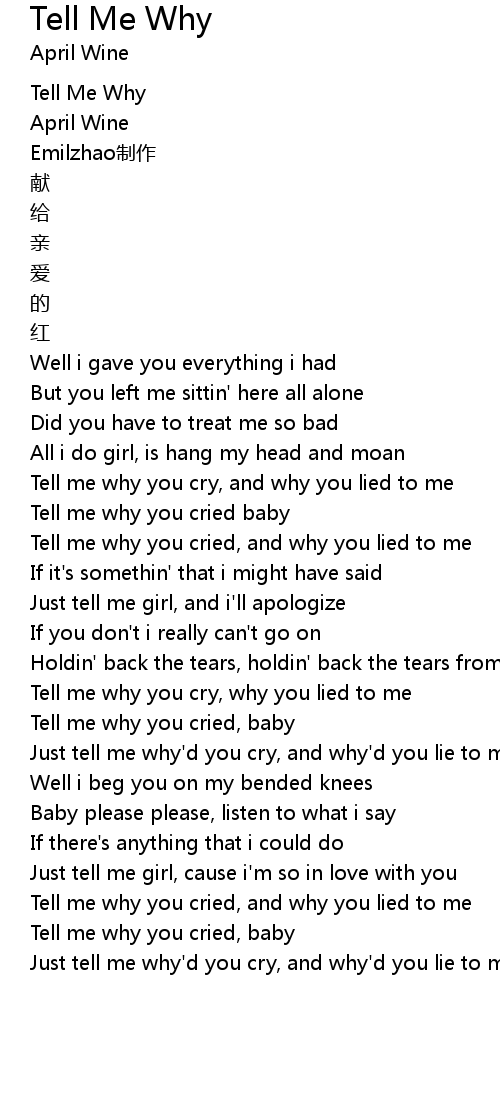 | [00:00.00] | Tell Me Why |