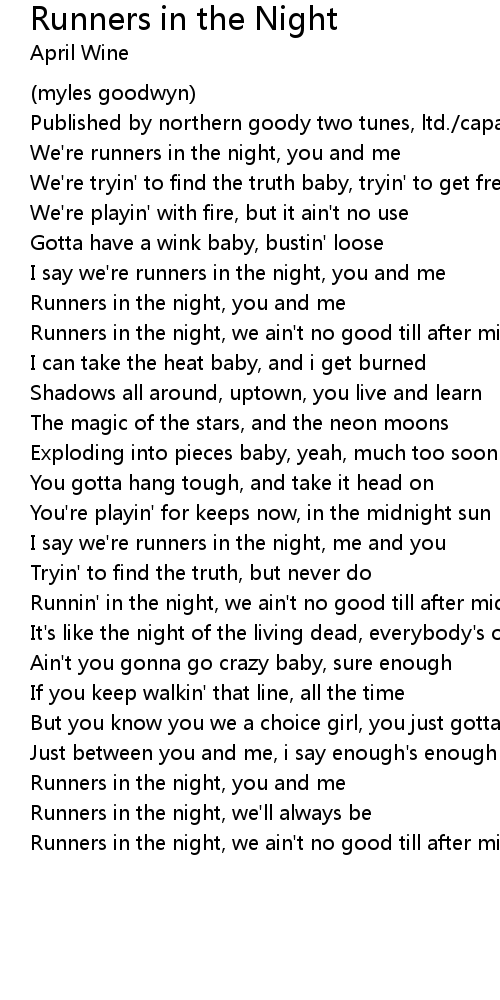 Runners in the night, we ain't no good till after midnight, yeah |