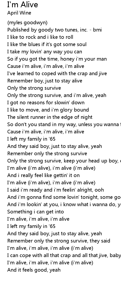 | I' m alive i' m alive, i' m alive i' m alive | |