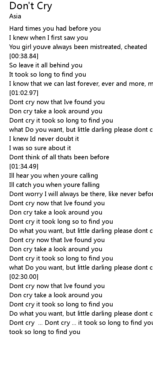 Dont cry ... Dont cry ... it took so long to find you Dont cry ... it took so long to find you |