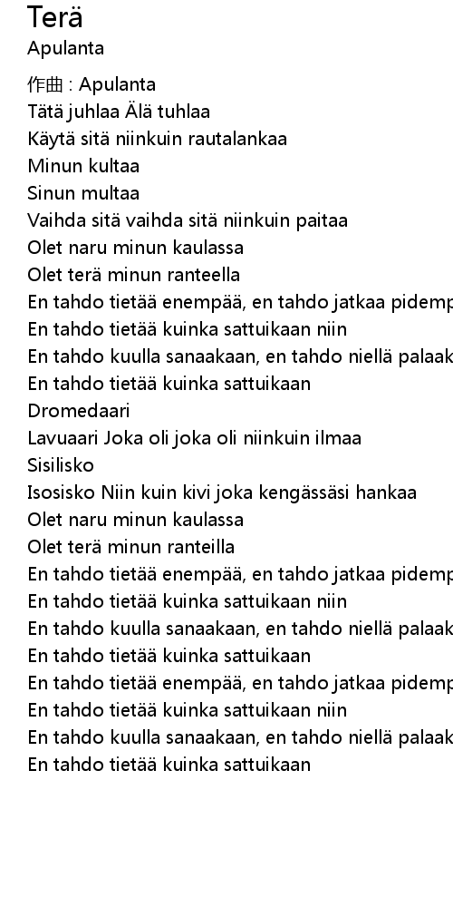 | En tahdo tietää enempää, en tahdo jatkaa pidempää | |