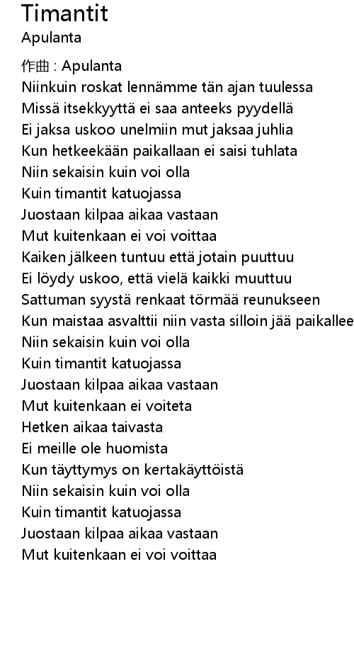 | 歌曲 | Timantit |