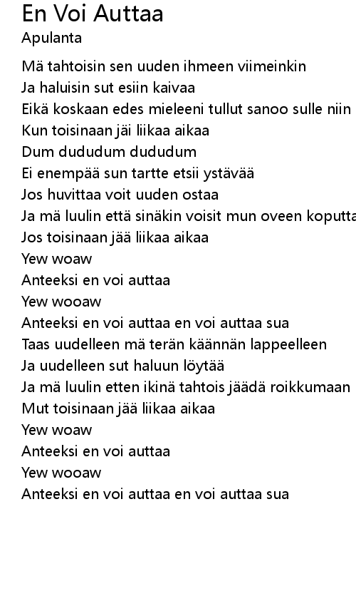 | Anteeksi en voi auttaa en voi auttaa sua |