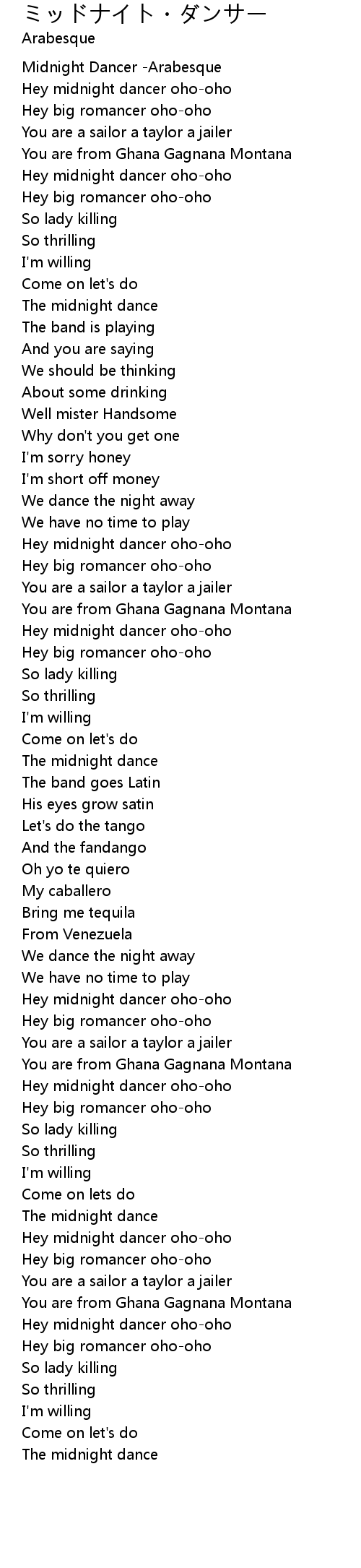 | [01:15.125] | Hey midnight dancer oho-oho |