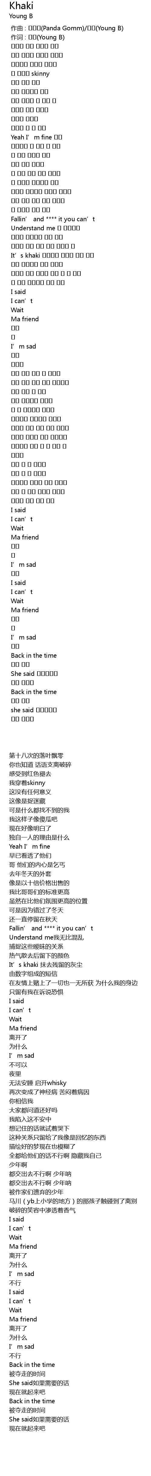 | [00:01.000] | 作词 : 영비(Young B) |