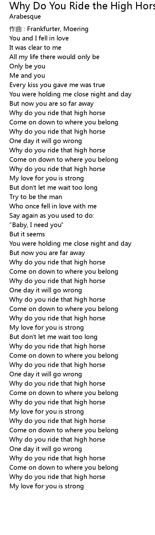 | 歌曲 | Why Do You Ride the High Horse |