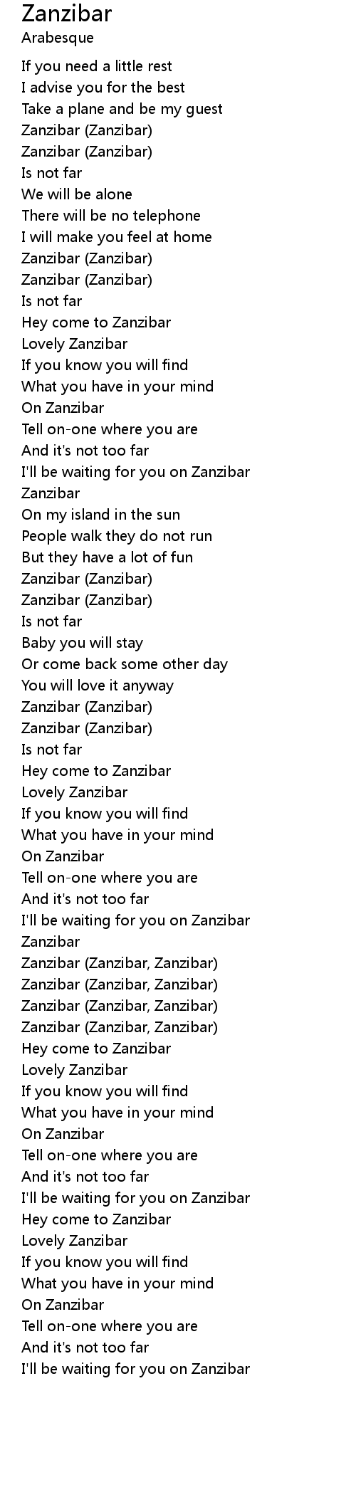 I'll be waiting for you on Zanzibar |