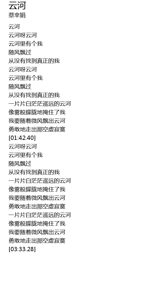 | [02:37.09] | 一片片白茫茫遥远的云河 |