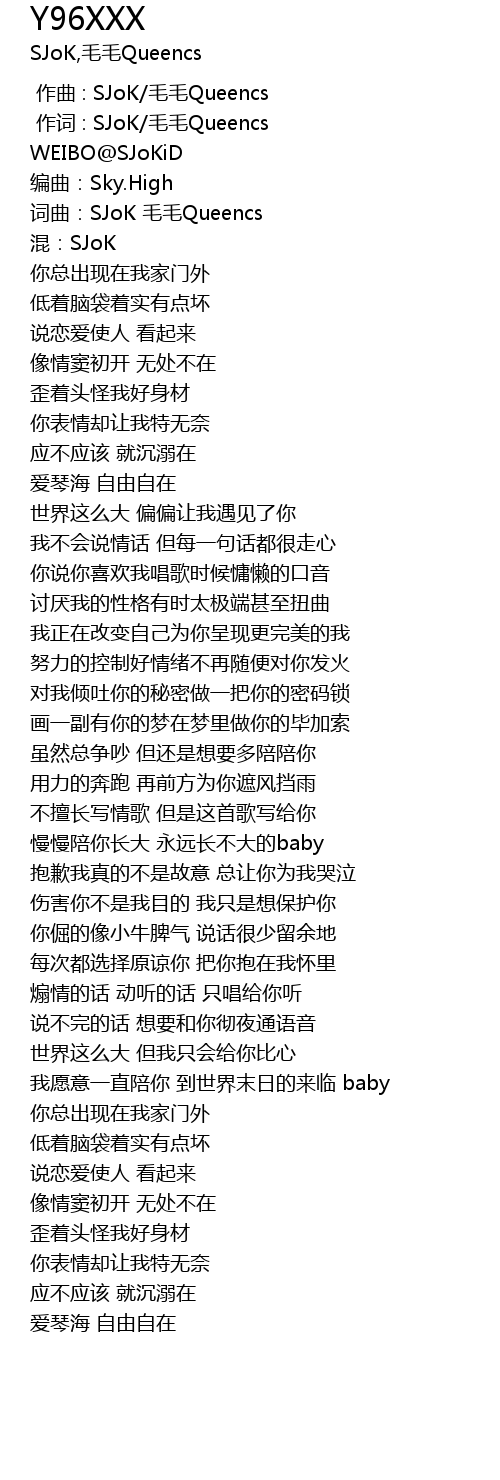| [00:00.02] | 词曲:SJoK 毛毛Queencs |