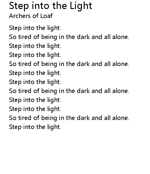 | Step into the light. | |