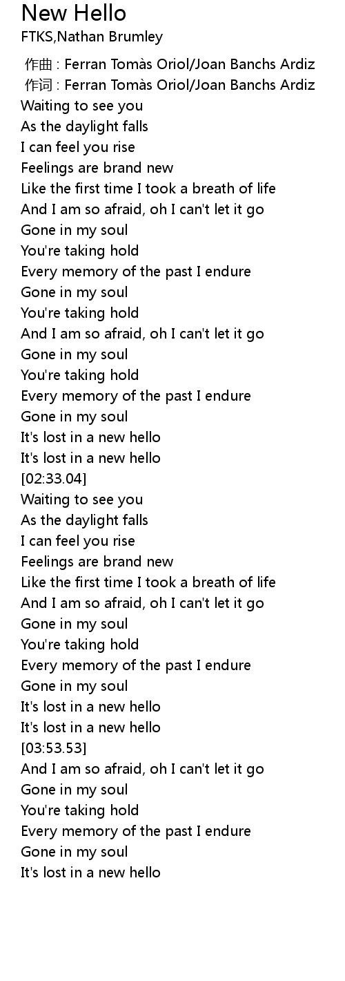 | [03:30.89] | It' s lost in a new hello |