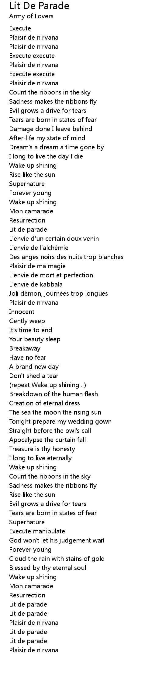 | 歌曲 | Lit De Parade |