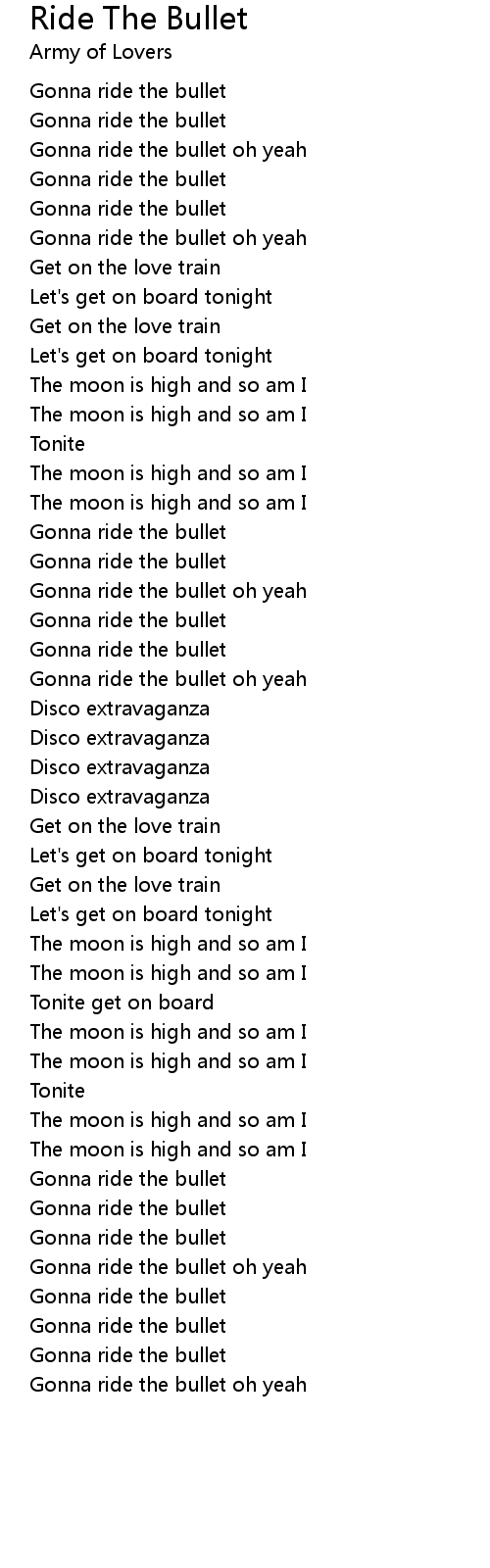 Gonna ride the bullet oh yeah |
