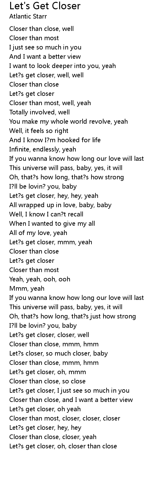Let?s get closer, oh, closer than close |