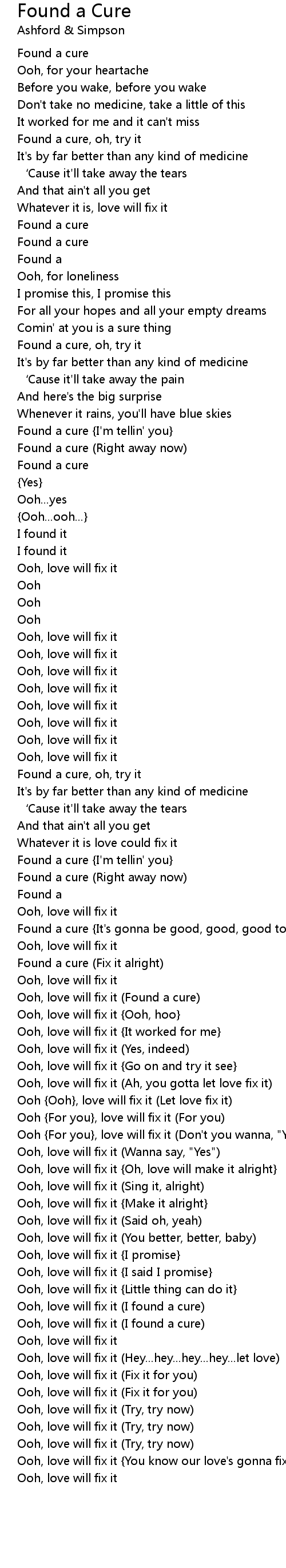 | Found a cure (Fix it alright) | |