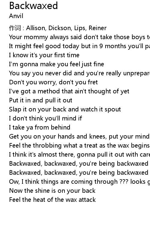 | Backwaxed, backwaxed, you're being backwaxed | |