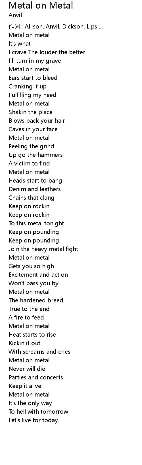 | 歌曲 | Metal on Metal |