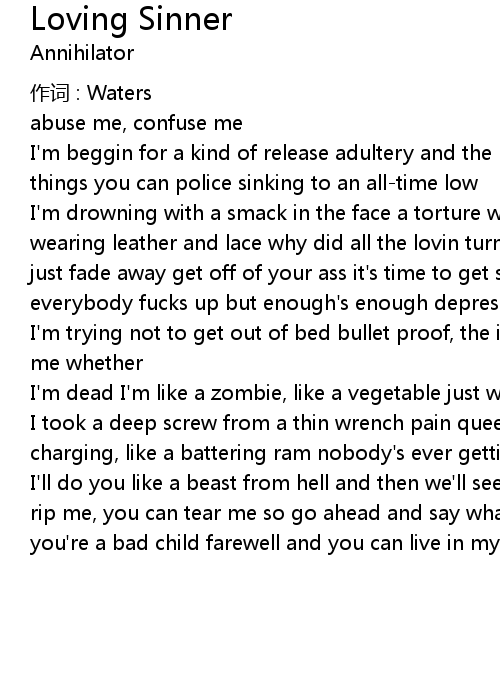 | I' m drowning with a smack in the face a torture with a slow decay the devil' s wearing leather and lace why did all the lovin turn to anger how did everything just fade away get off of your ass it' s time to get some fuckin class well everybody fucks up but enough' s enough depression, the obsession | |